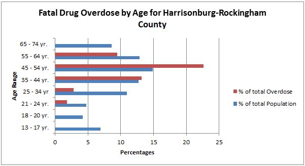 The true danger with these drugs is not just their potential for addiction, but for deadly overdose. According to the Virginia Medical Examiner, the most impacted age range for overdose death in our area is individuals 45 – 55 years old.